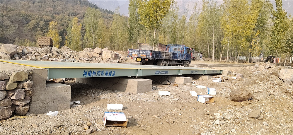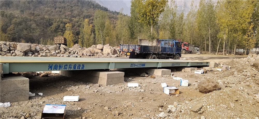 采購背景:新鄉(xiāng)市輝縣溫水泉花崗巖開采治理區(qū)鴨口村治理區(qū)需要對開采的尾礦區(qū)沙石料進行二次利用,大量沙石料出廠需要解決貨車計量問題。經(jīng)過廠區(qū)考察,采購了中原恒瑞地磅廠3臺16m-150T電子汽車衡,這次安裝的是第二臺電子地磅。