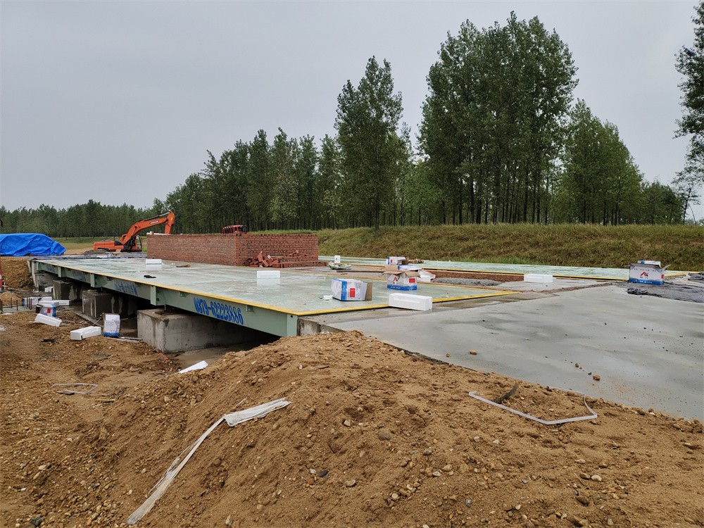 信陽商城上石橋李湖村河沙廠150噸雙向地磅施工案例