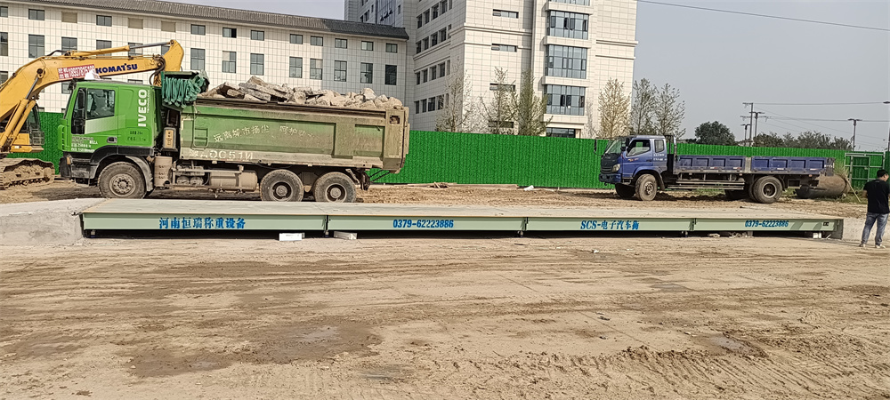 采購(gòu)背景:河南康諾建設(shè)工程有限公司位于河南省開(kāi)封市杞縣汶水路中段58號(hào),主營(yíng)建筑工程、機(jī)電工程、公路工程、礦山工程、市政公用工程等。此次杞縣中醫(yī)院項(xiàng)目在建施工,項(xiàng)目拌和站內(nèi)大量建筑材料進(jìn)出需要稱重計(jì)量,故訂購(gòu)了一臺(tái)中原恒瑞地磅廠3x16m定額150噸數(shù)字汽車(chē)衡,汽車(chē)衡有四節(jié)3x4m高強(qiáng)鋼面板秤臺(tái)搭接組成,秤臺(tái)底部貫穿6道700L高強(qiáng)鋼U型梁,配備了恒瑞HR-DZ-40T數(shù)字傳感器,恒瑞HR-D3+數(shù)字儀表,汽車(chē)衡稱量數(shù)據(jù)以數(shù)字信號(hào)傳輸,防作弊,準(zhǔn)確度高?,F(xiàn)汽車(chē)衡已安裝完成并投入使用。